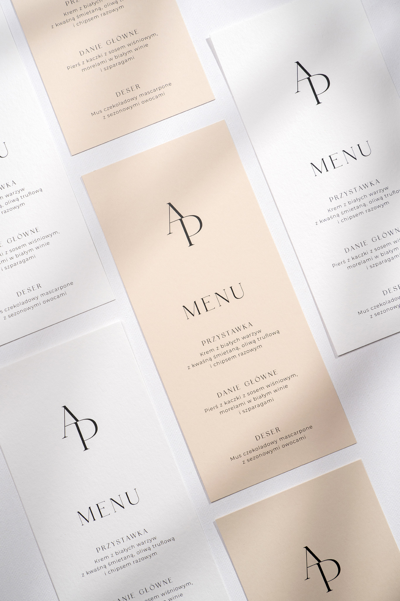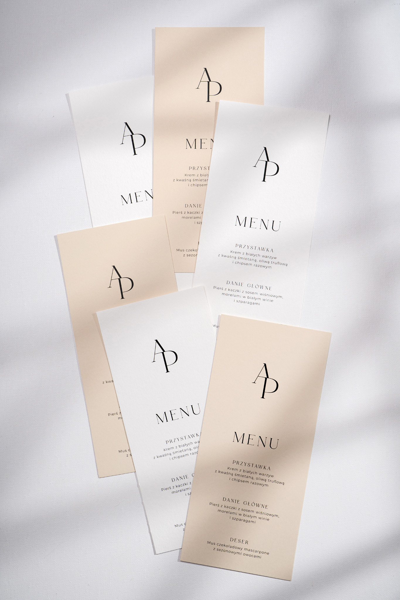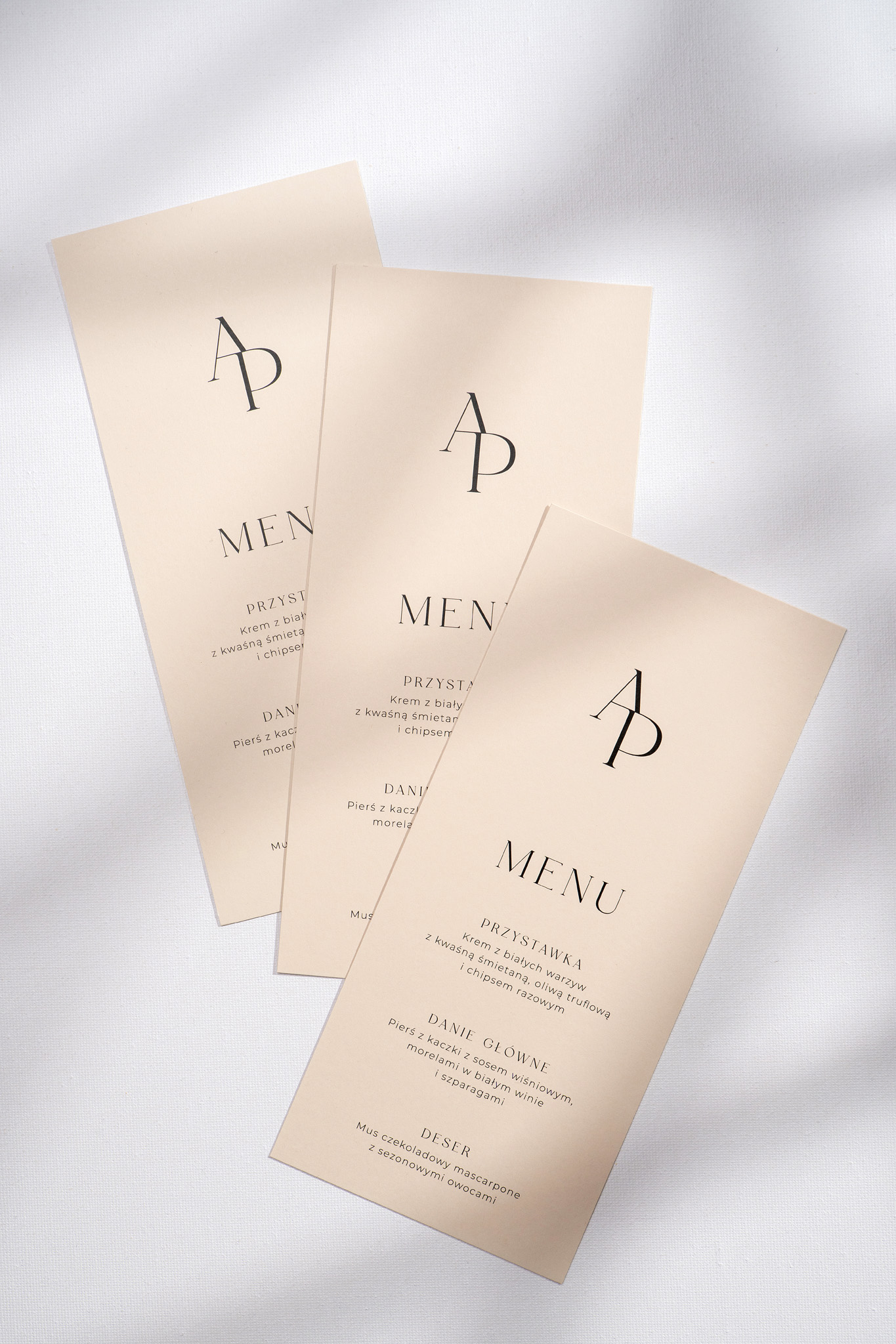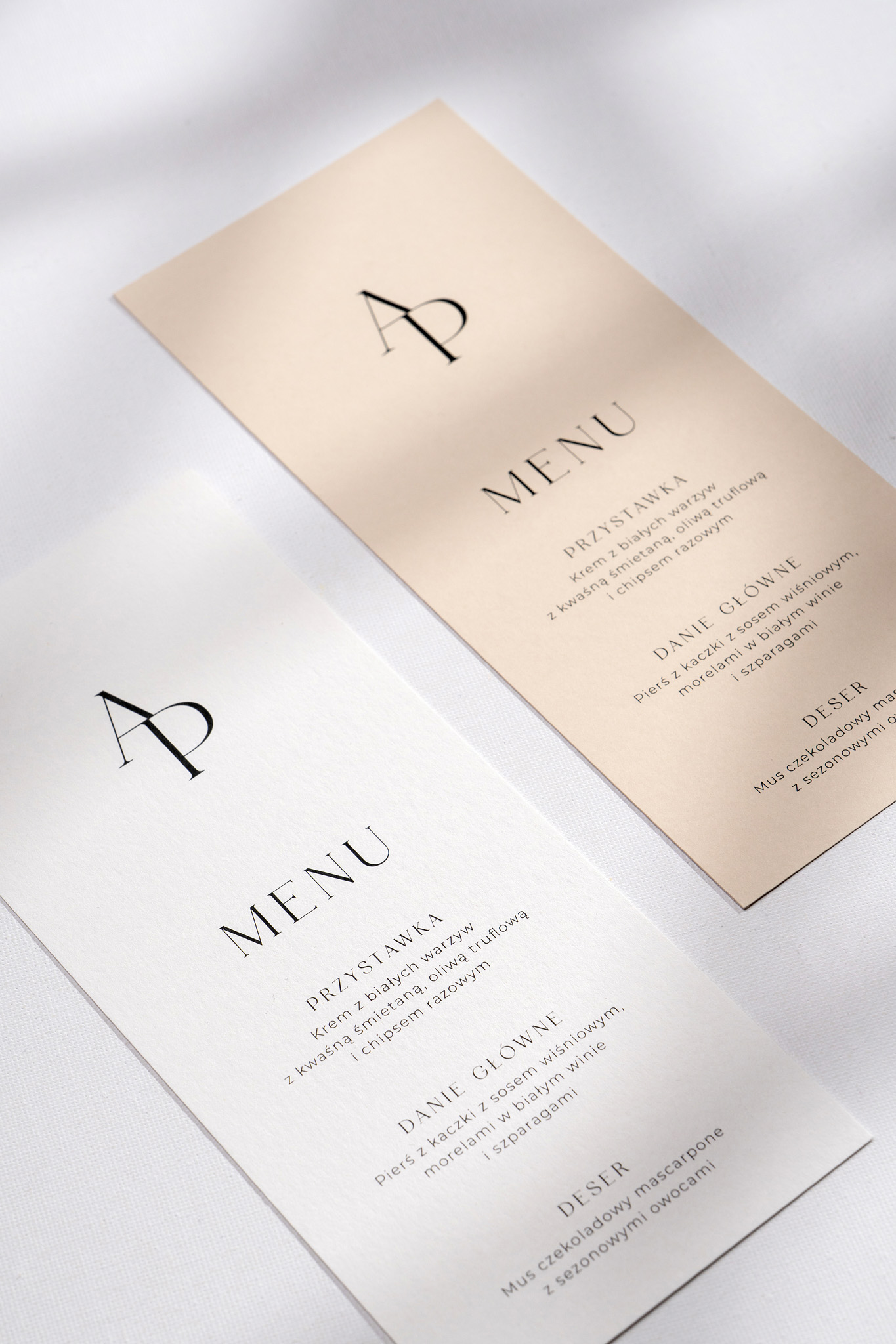Menu leżące Lovely Letters to klasyczna i elegancka karta w formacie DL, stworzona z myślą o wyjątkowym zaprezentowaniu weselnego menu. Wykonana z wysokiej jakości papieru, dostępnego do wyboru w dwóch stonowanych kolorach: śmietankowej bieli lub naturalnego beżu.