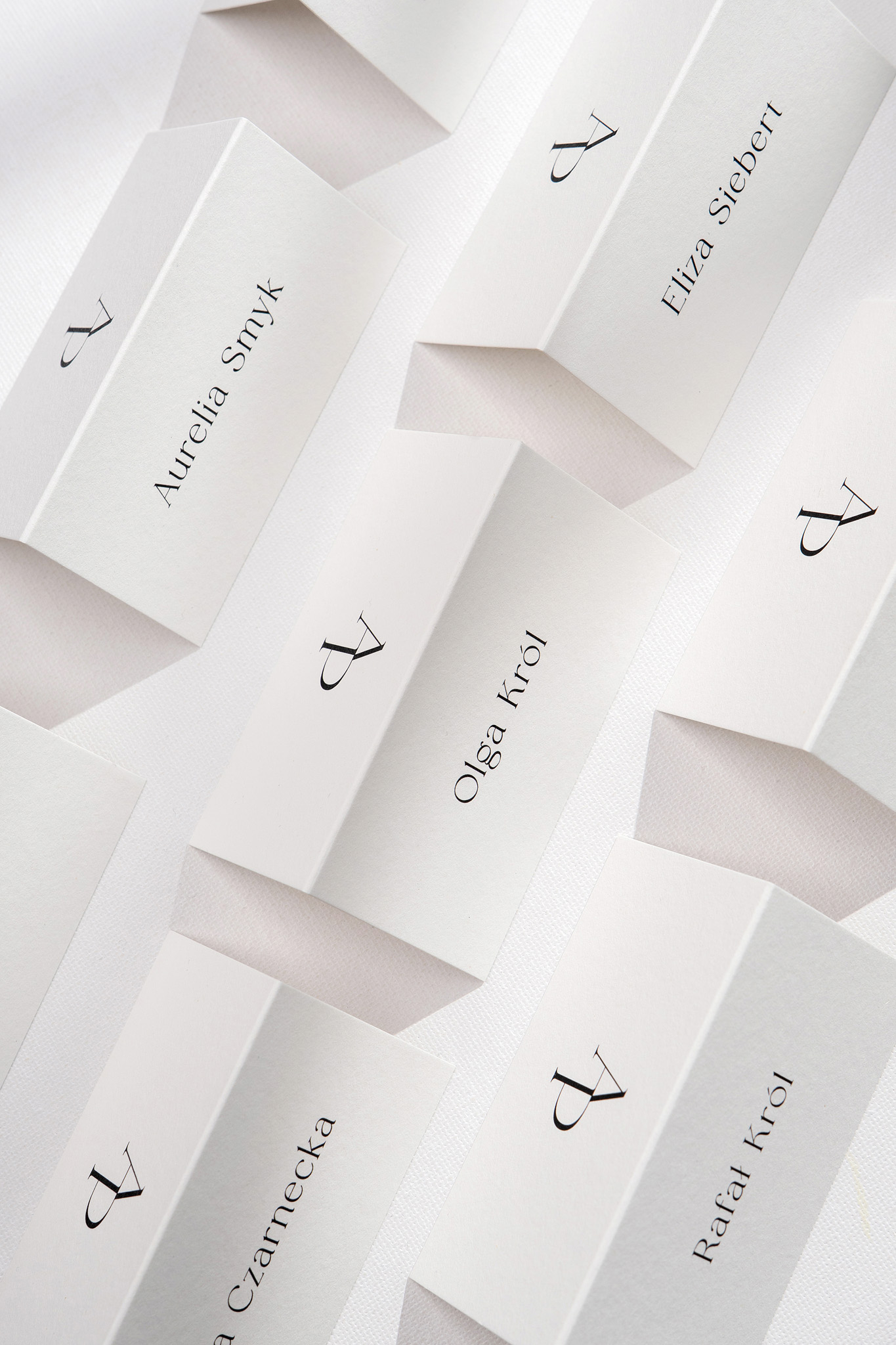Z tyłu każdej winietki znajduje się monogram Pary Młodej – dyskretny detal o osobistym charakterze.