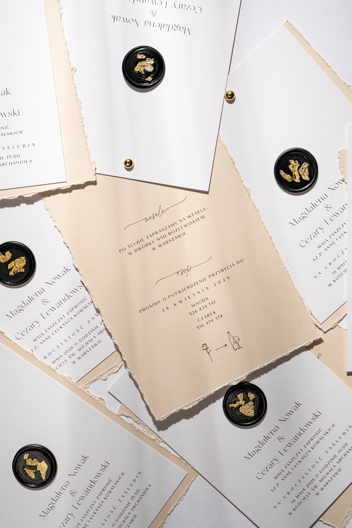 Stworzone z myślą o Parach ceniących naturalne materiały i delikatne wykończenia. Główna karta wykonana jest ze śmietankowego papieru o bawełnianej fakturze, która dodaje miękkości i elegancji. Druga karta, w ciepłym beżowym odcieniu, wyróżnia się ręcznie rwanymi brzegami, które podkreślają rękodzielniczy charakter projektu.